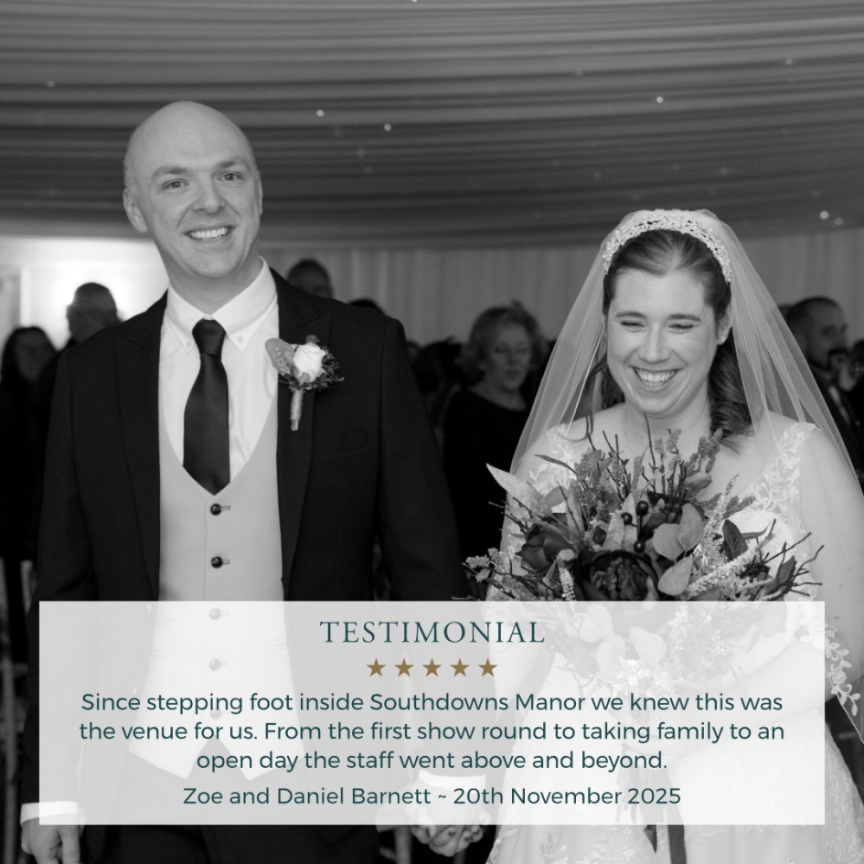 At Southdowns Manor, we are proud to be known for our warm hospitality, beautiful countryside setting within the South Downs National Park, exceptional food, and dedicated wedding planners who go above and beyond. Our recent Autumn and Winter 2025 weddings perfectly showcase what makes Southdowns Manor one of the most loved wedding venues in the South Downs.